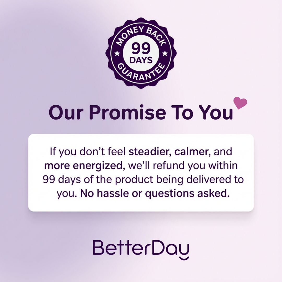 If you don't feel noticeably steadier, calmer, and more energized within 99 days, we don't want your money.